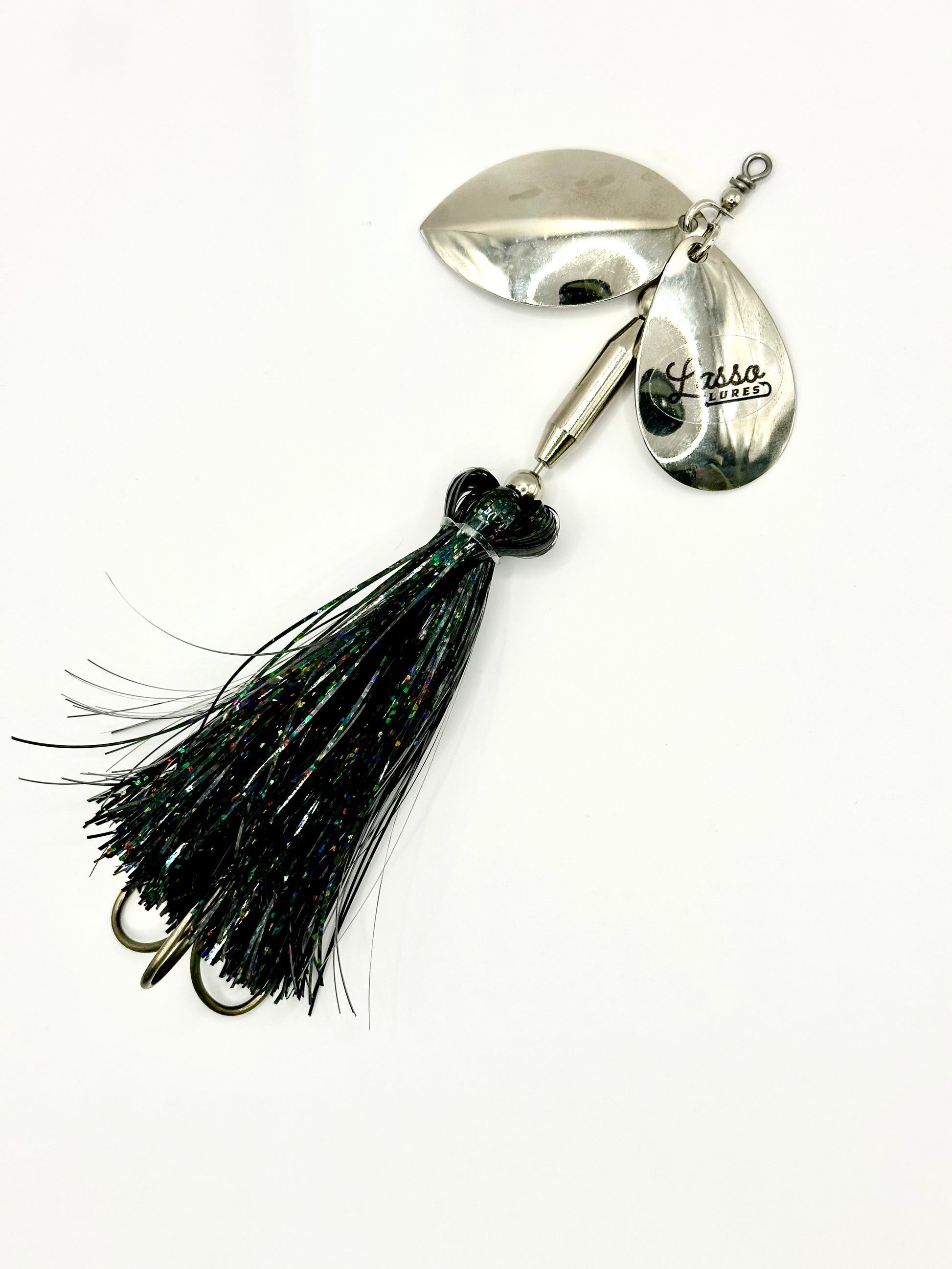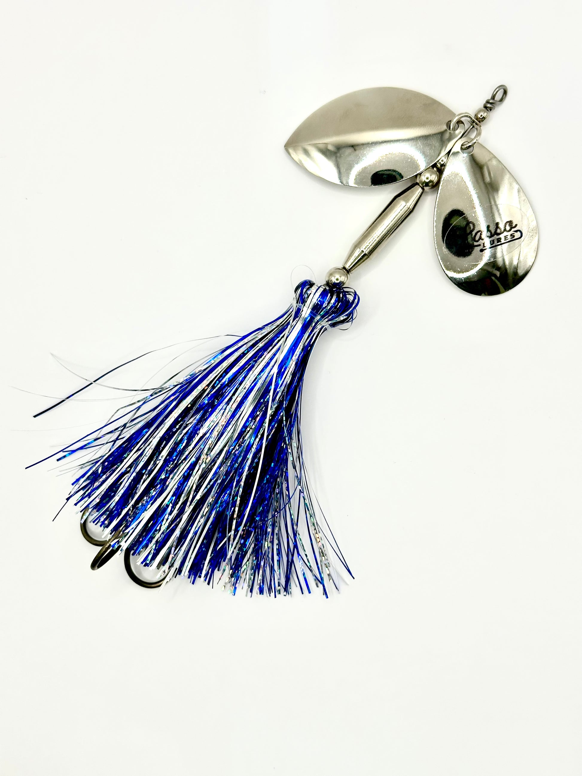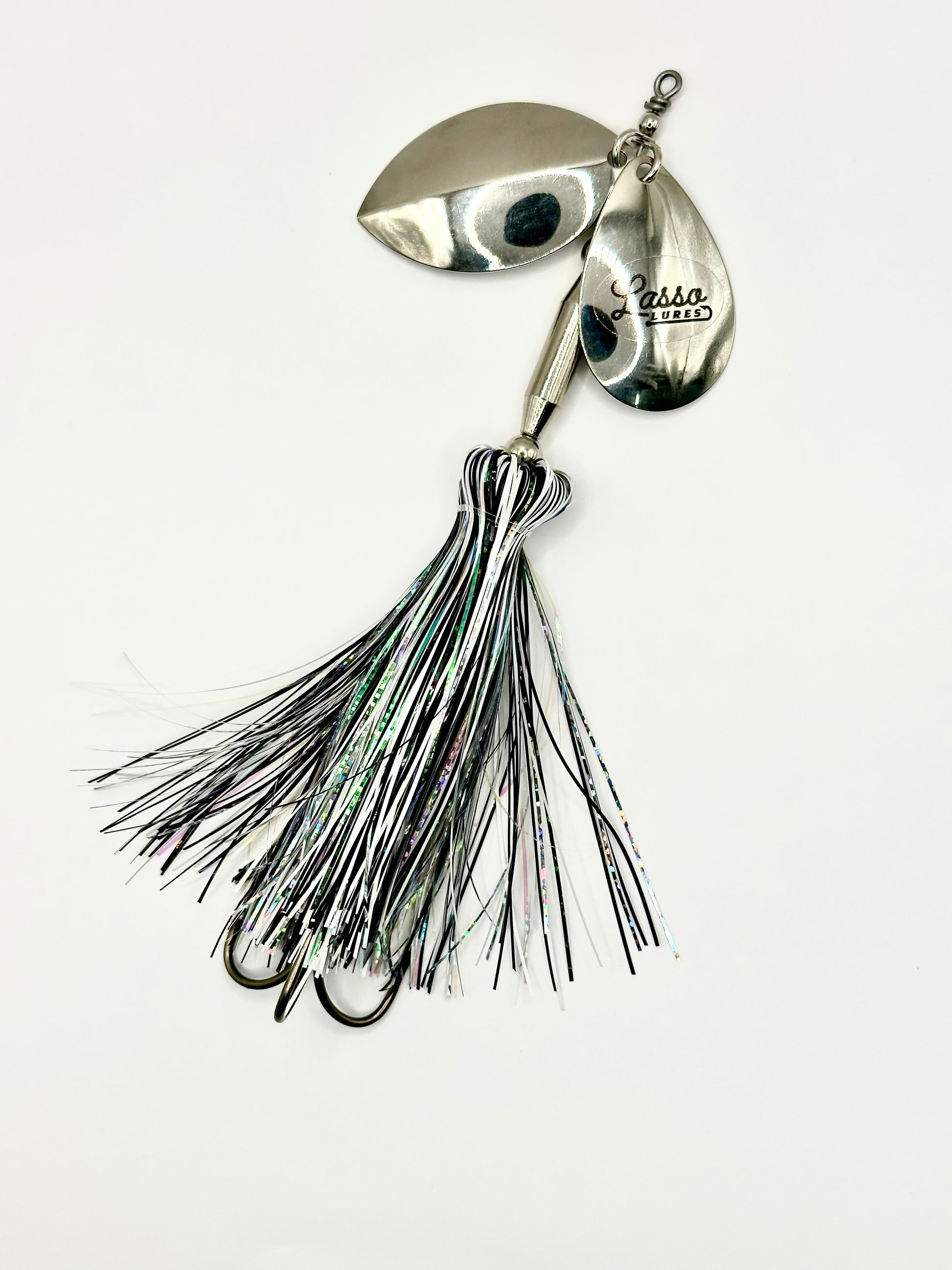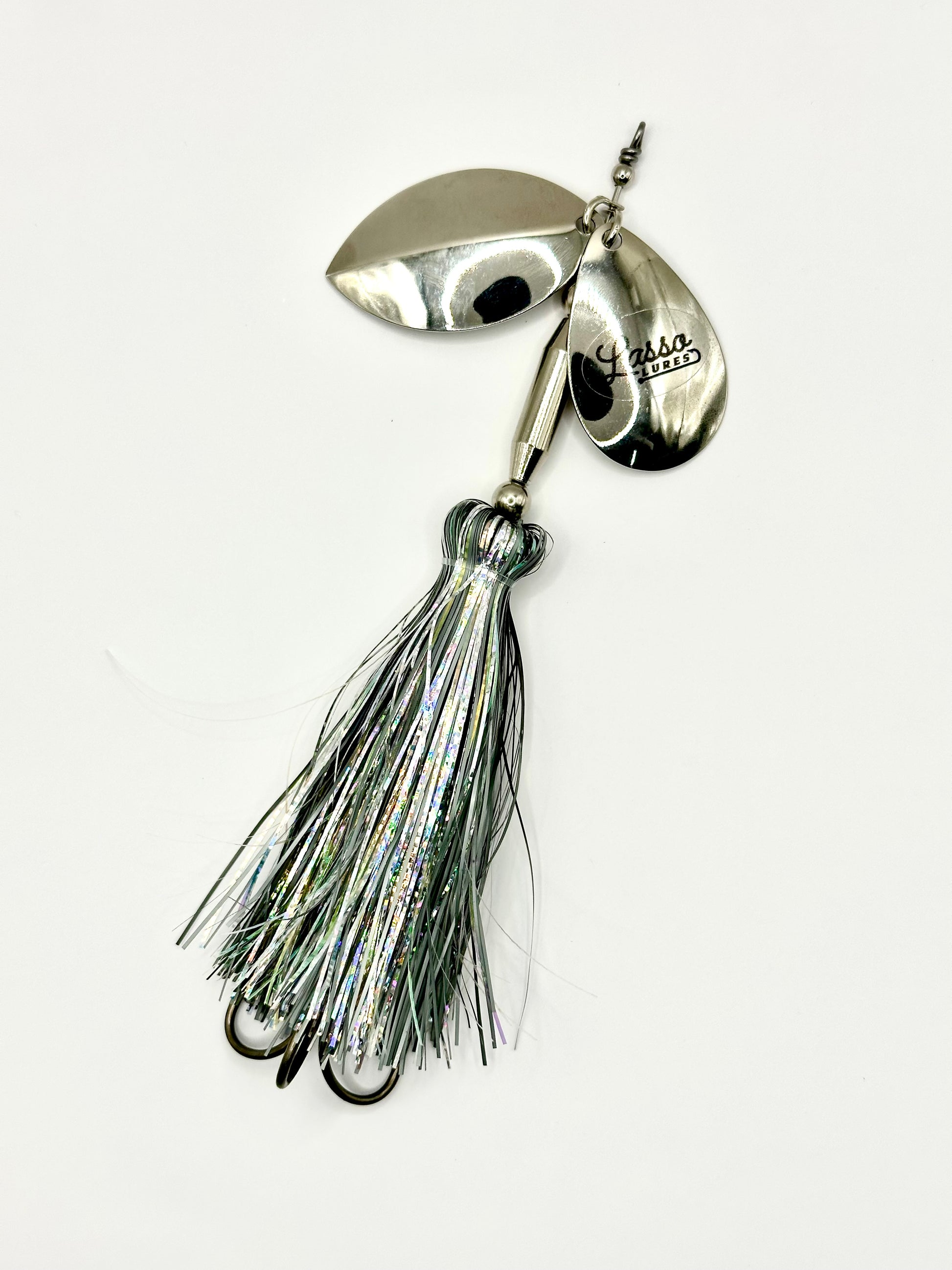 Featuring one Wide Willow and one Colorado blade, this stagger bladed in-line has added weight allowing it to be retrieved at higher speeds without breaking the surface. This speed forces a fish to make a "Spur" of the moment decision to strike bait.