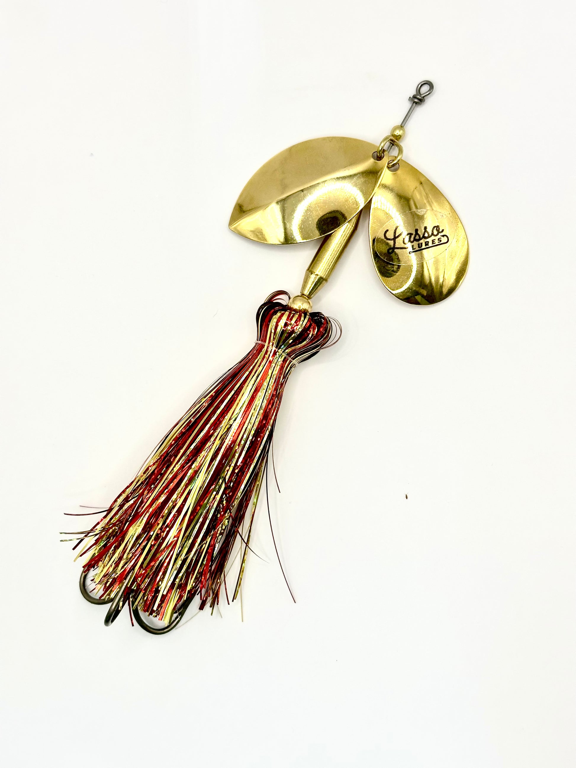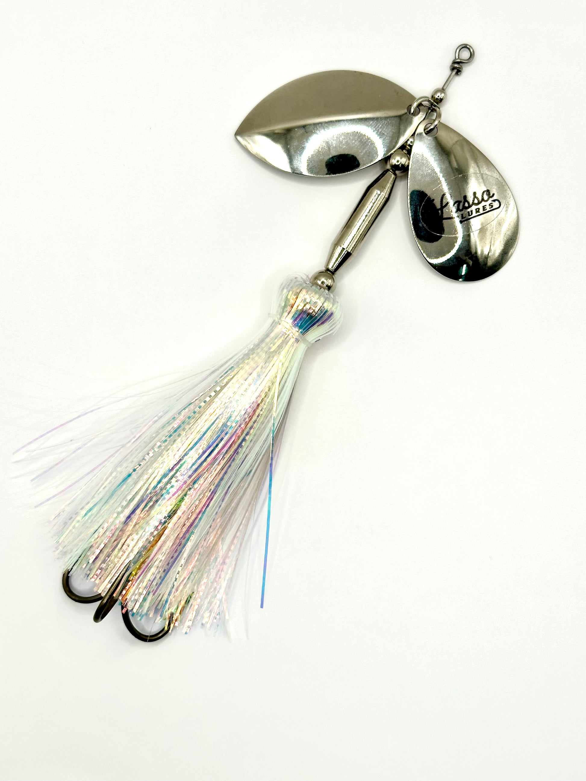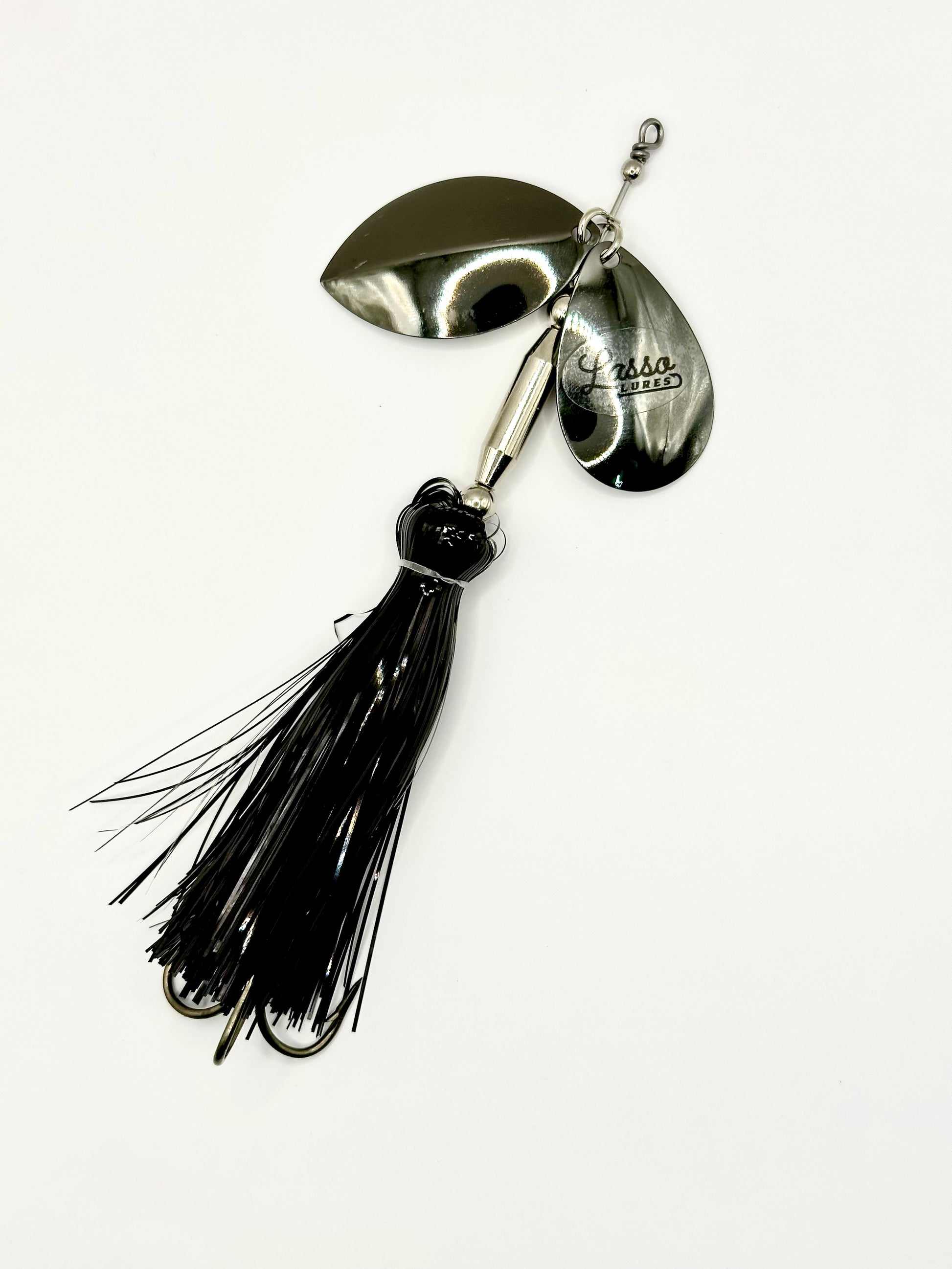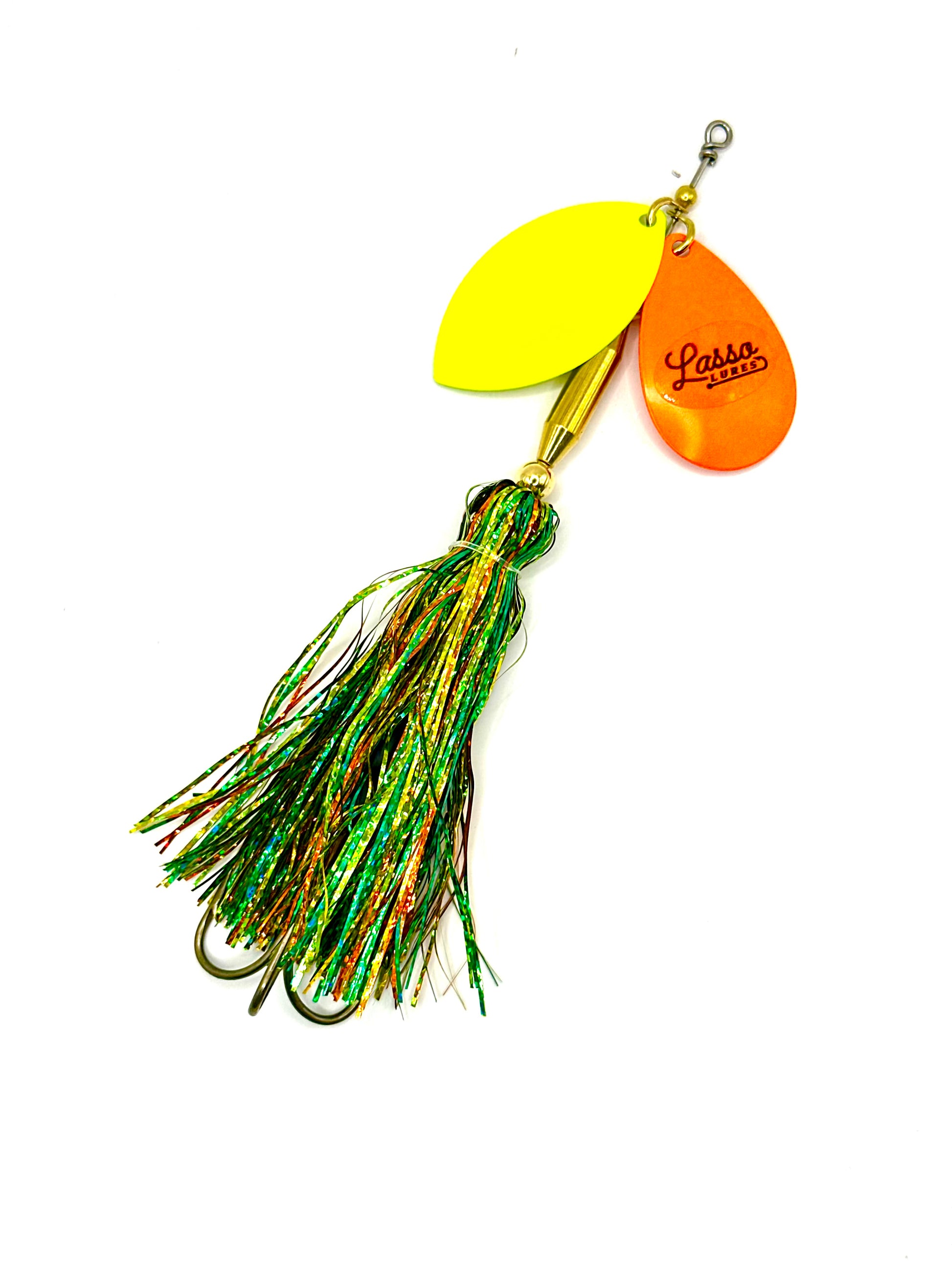 Featuring one Wide Willow and one Colorado blade, this stagger bladed in-line has added weight allowing it to be retrieved at higher speeds without breaking the surface. This speed forces a fish to make a "Spur" of the moment decision to strike bait.