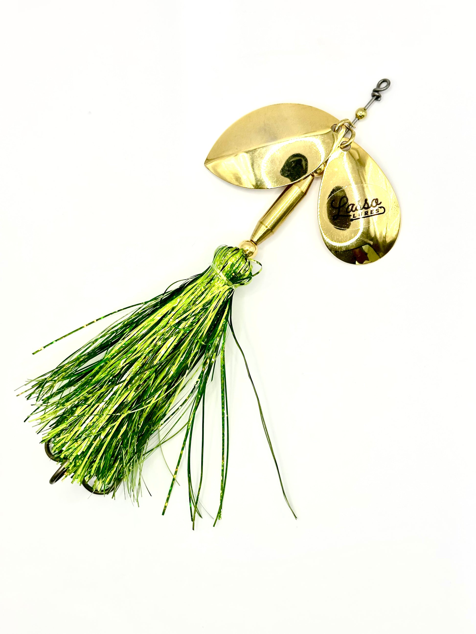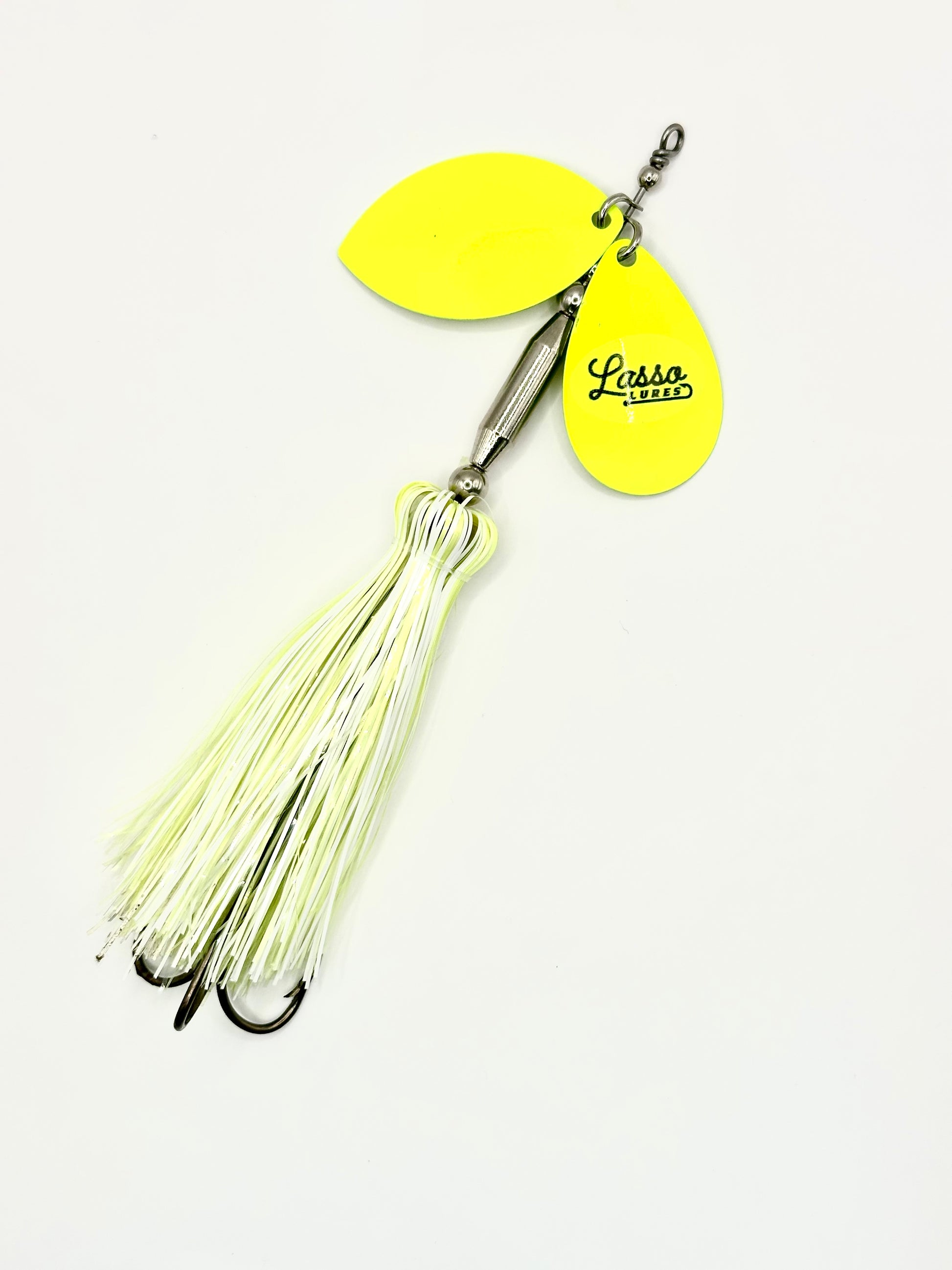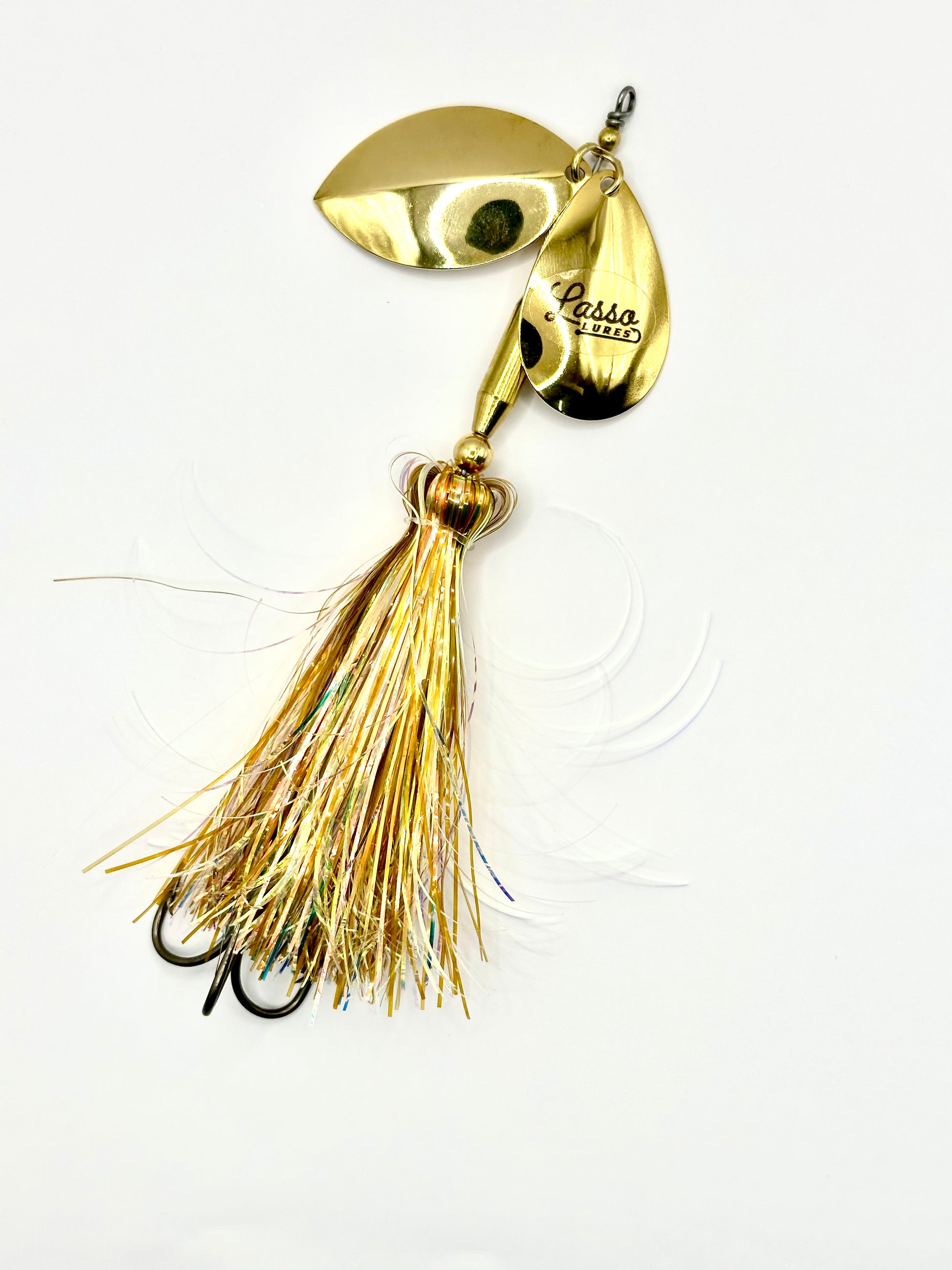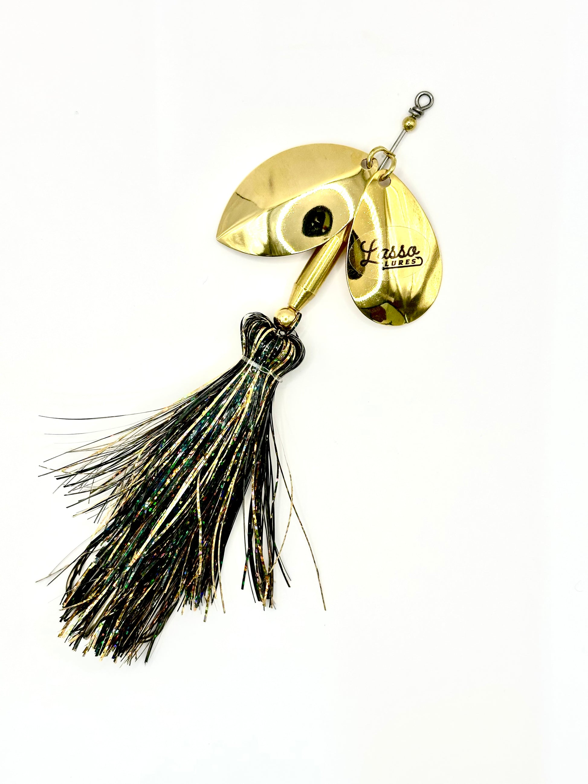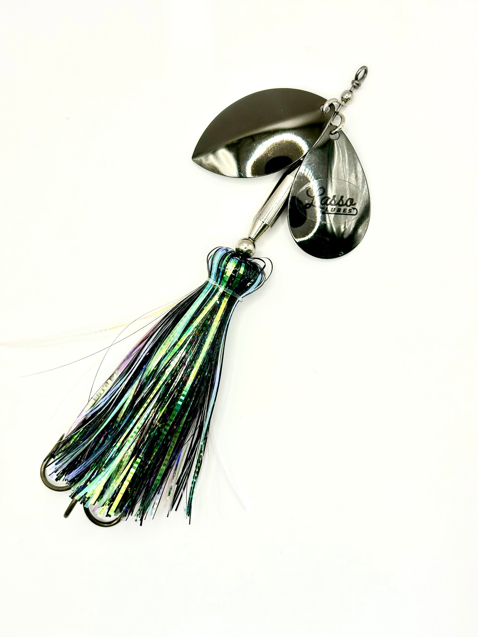 Featuring one Wide Willow and one Colorado blade, this stagger bladed in-line has added weight allowing it to be retrieved at higher speeds without breaking the surface. This speed forces a fish to make a "Spur" of the moment decision to strike bait.
