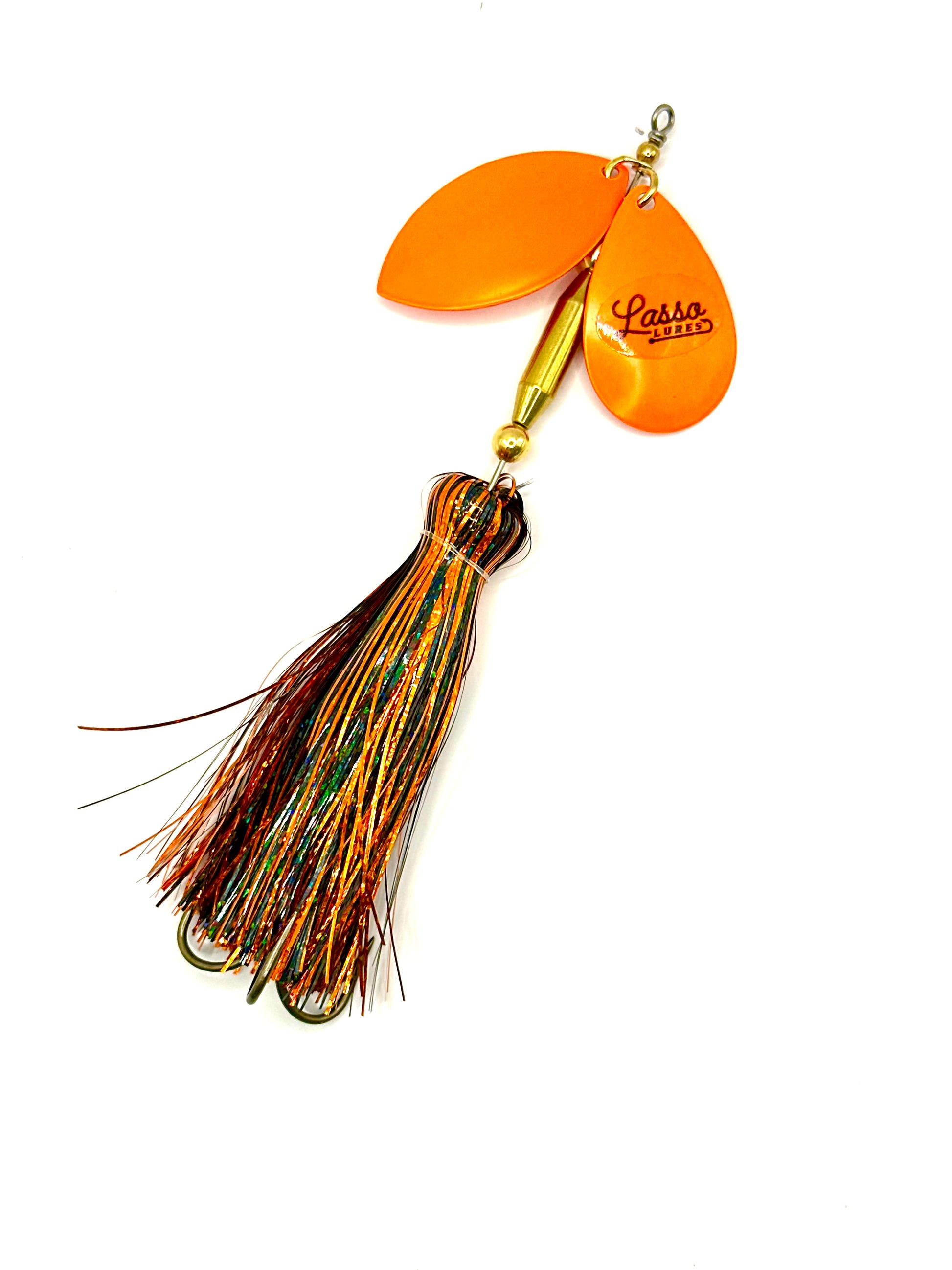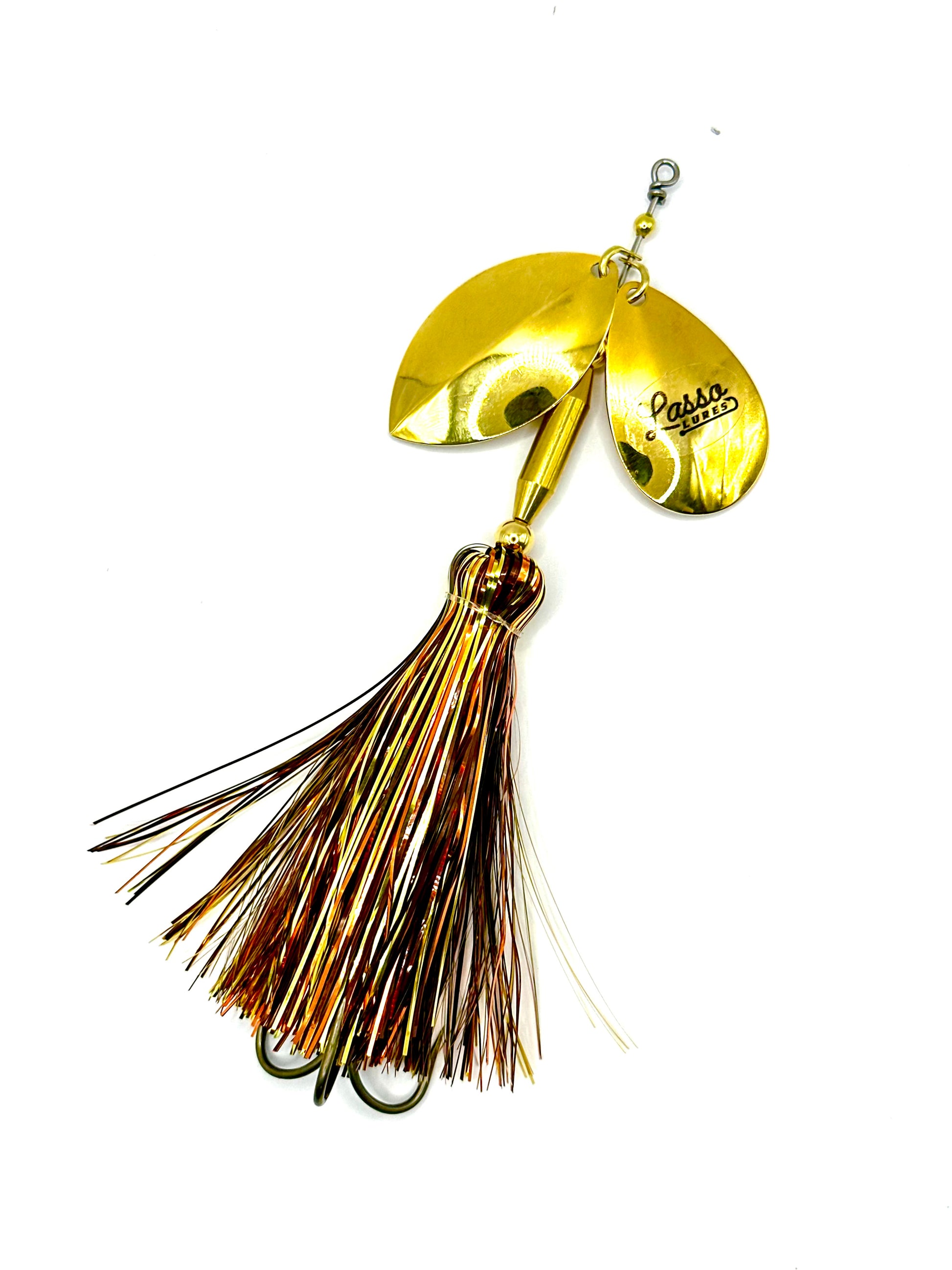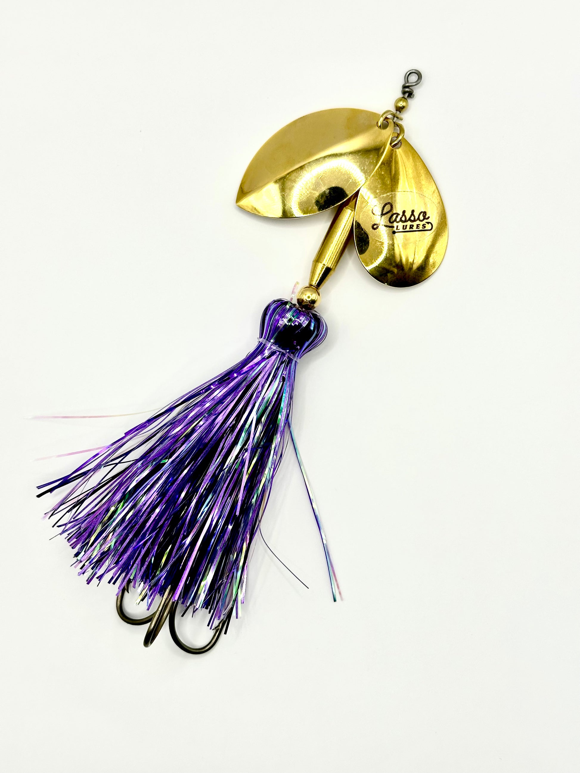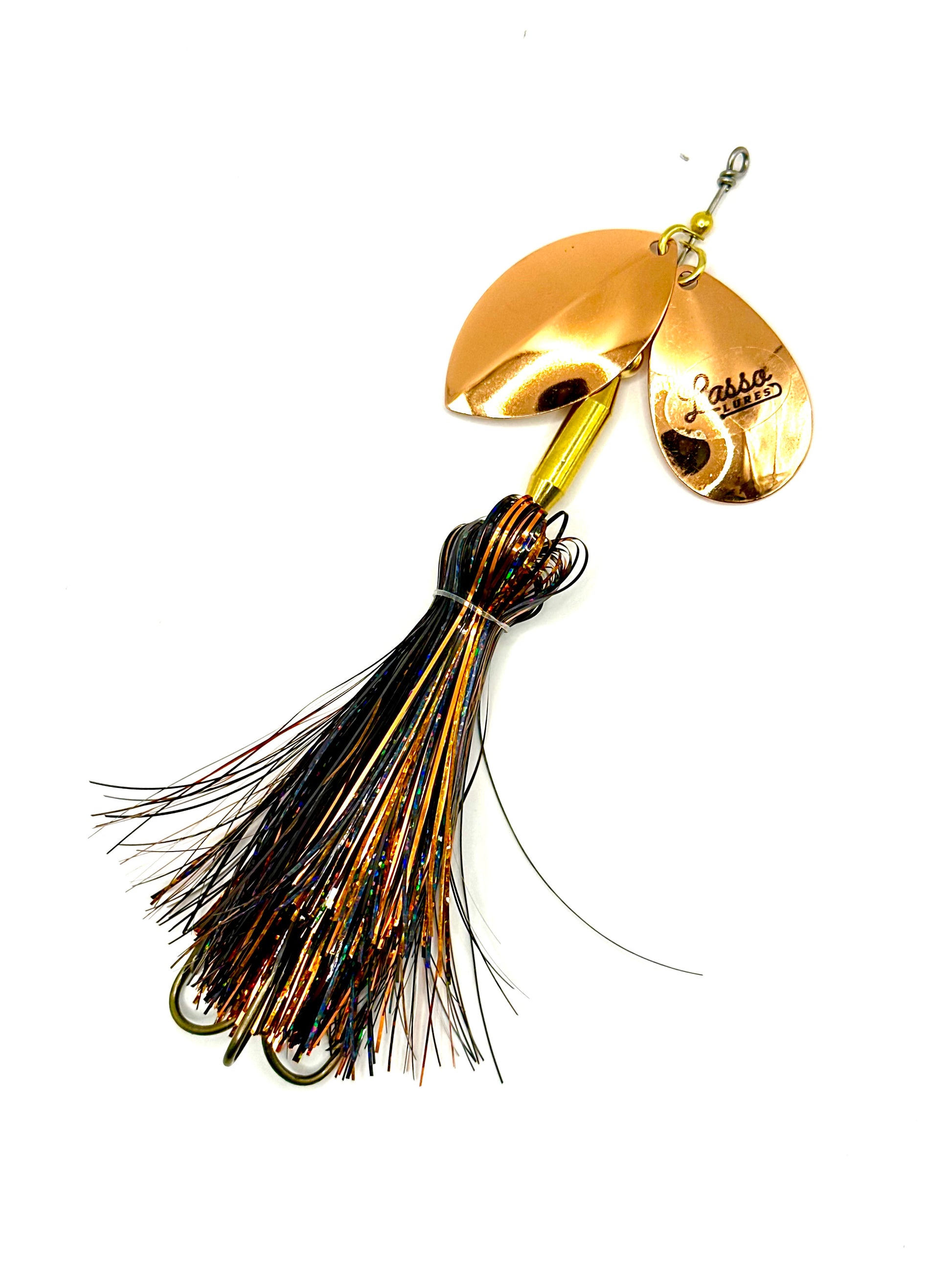 Featuring one Wide Willow and one Colorado blade, this stagger bladed in-line has added weight allowing it to be retrieved at higher speeds without breaking the surface. This speed forces a fish to make a "Spur" of the moment decision to strike bait.